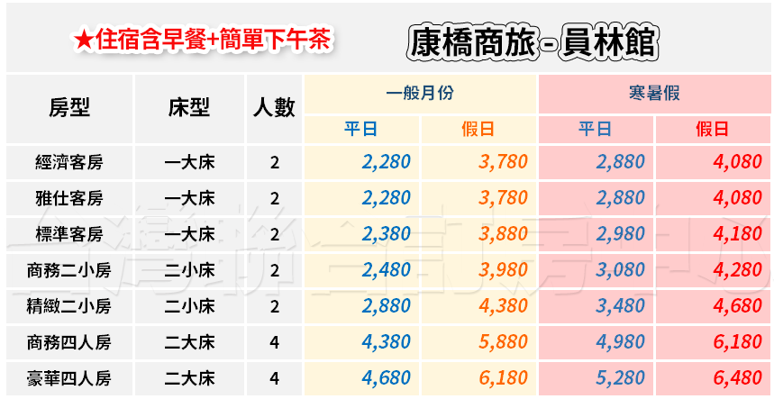 1. 住宿房型為經濟客房 平日2280元 假日3780元