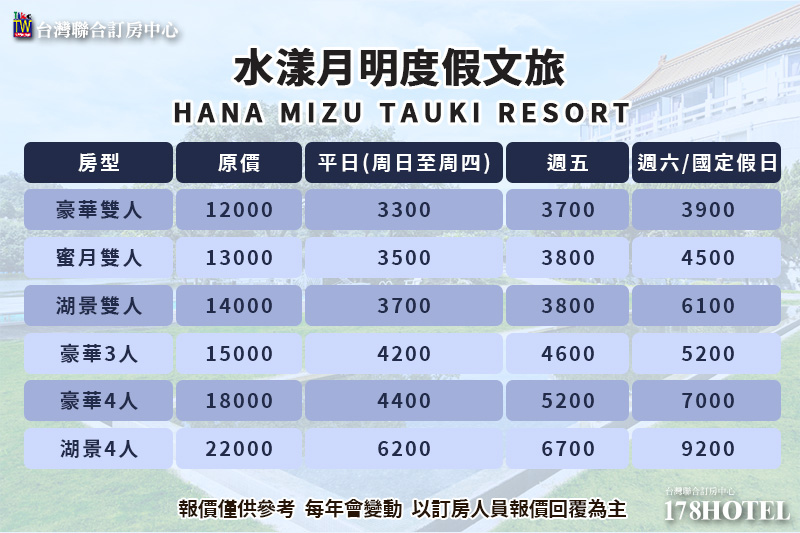 17P ►苗栗明德水庫 水漾月明度假文旅 平日3300元起 全房型代訂房