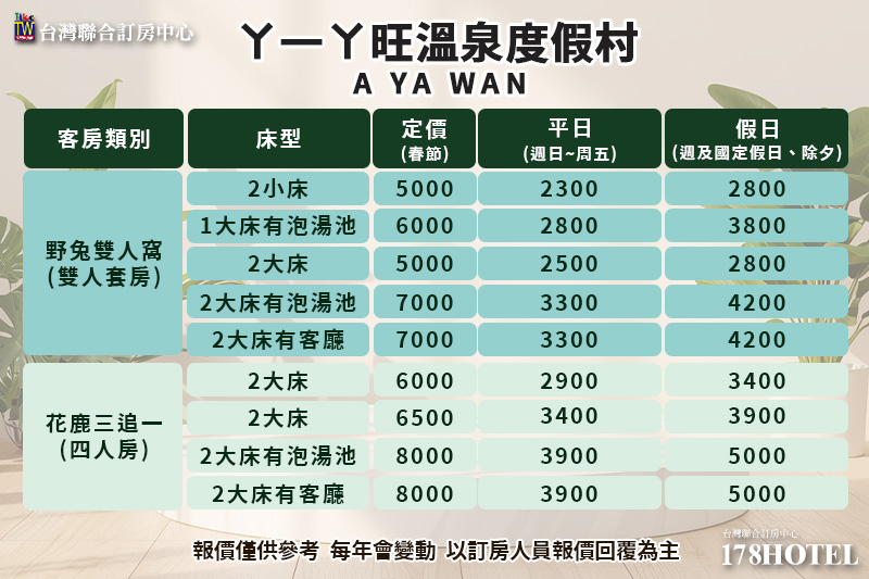 另有更多房型報價參看下表
